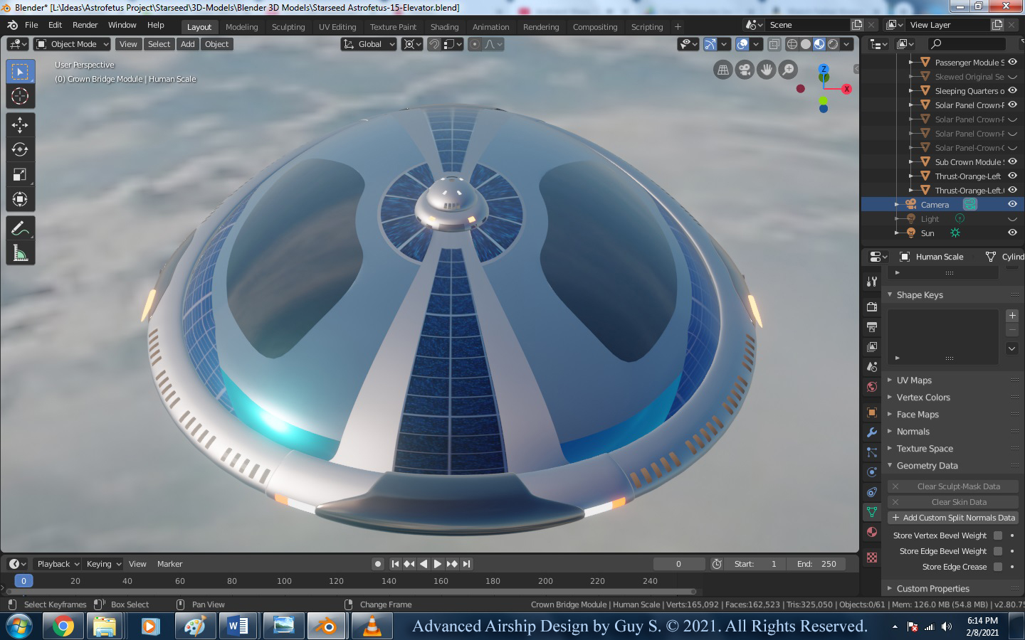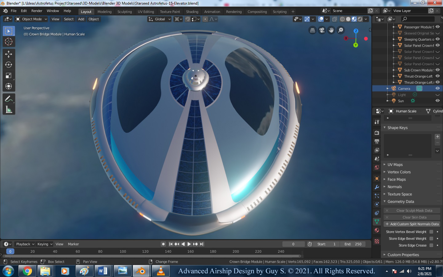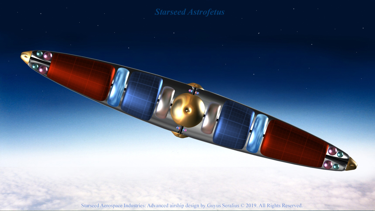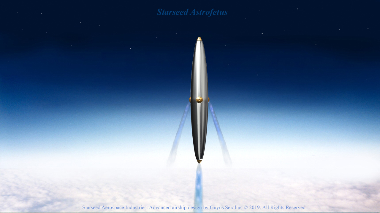 I also had developed a deep interest in rocketry, the Apollo space program, and space travel in general. These interests have allowed me to imagine traveling to the edge of space, to the Moon, and possibly beyond to other planets and to the stars in a very high-tech LTA airship.  I have seriously fantasized about designing and constructing these futuristic, space-venturing airships for the last 24 years. In the following paragraphs, I will briefly explain how I think it can be done.