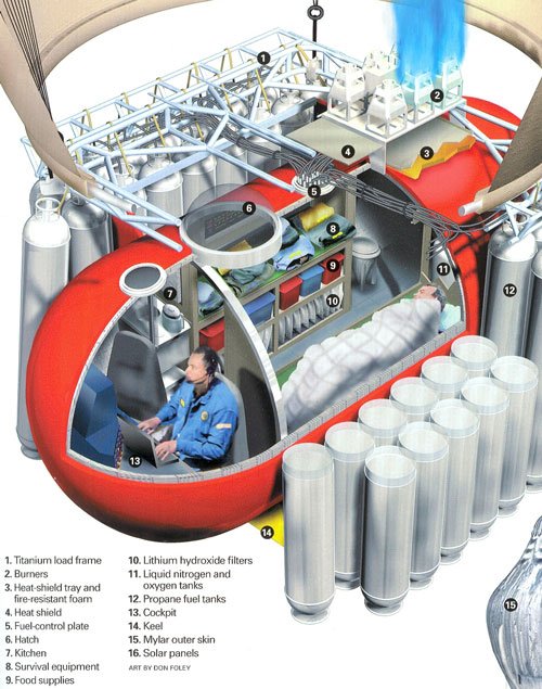 Another team in this balloon race, known as team RE/MAX, had planned on ascending in a gas balloon to what some call the real edge of space and the ceiling of our atmosphere (around 130,000 ft) in what truly looked like a space-age capsule, so they could stay well above the hazardous weather down below as they attempted to circumnavigate the globe. In fact, the three men that were going to ride in it where going to have to wear actual space suits that were themselves pressurized. They ended up calling it all off—I forget why—but it showed me there were others who were thinking along the same lines.