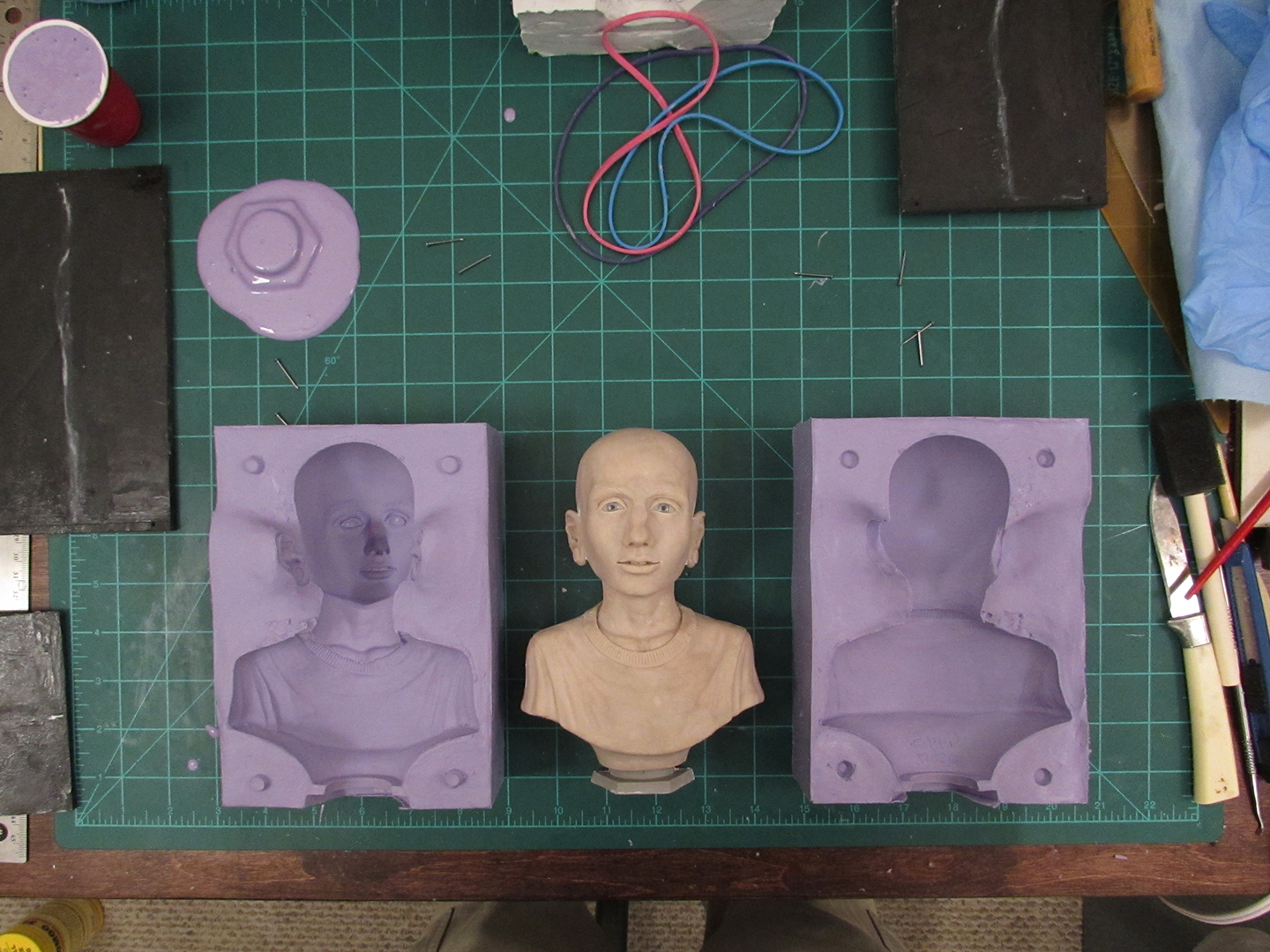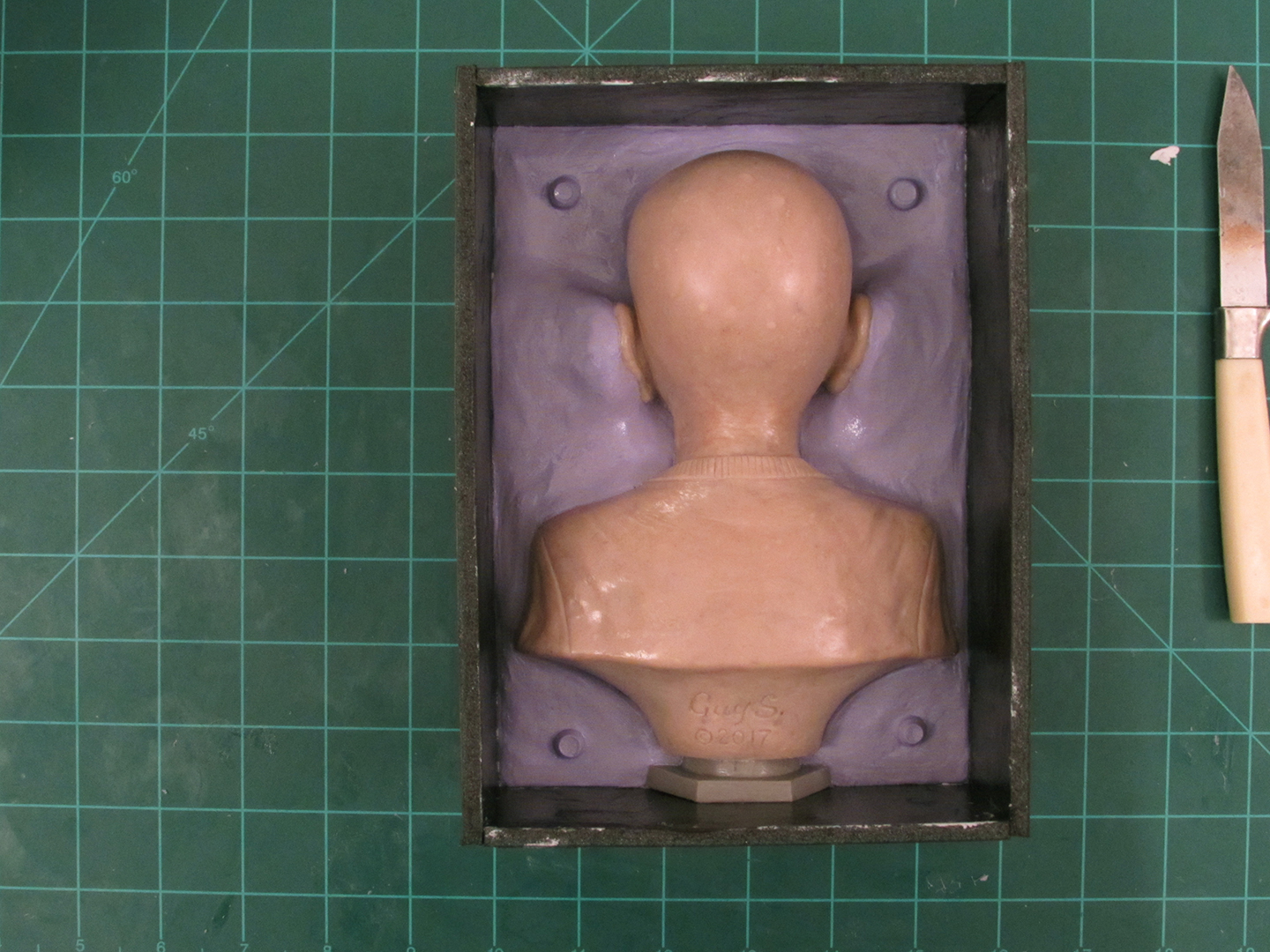 My first Oomoo silicone mold turned out pretty good, but I learned that a vertical, seamless mold that you have to cut open was not ideal for mass producing these head busts for a variety of reasons.